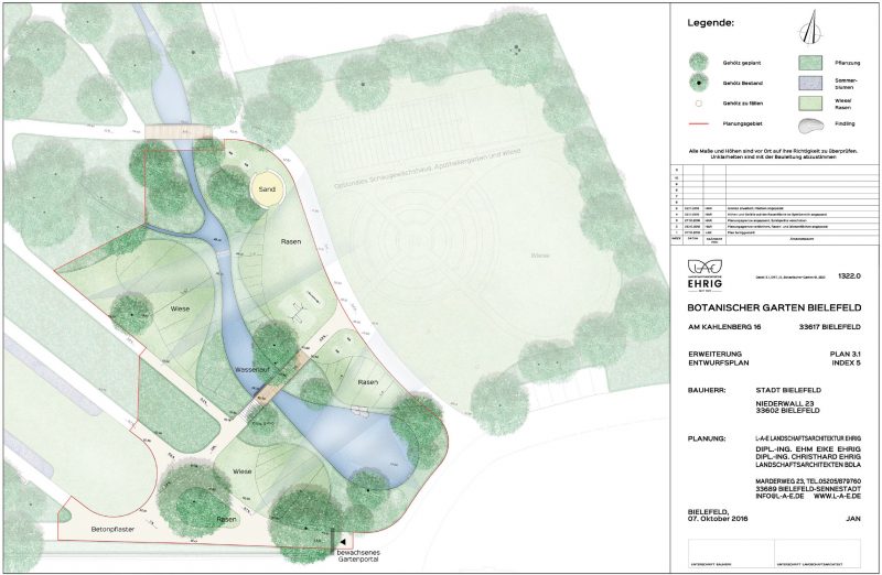 The process of the regeneration of a previously unused land site in order to expand the existing Botanical Garden was divided into two stages. Namely, the regeneration of the new land site and the following integration of it to the old Botanical Garden by introducing new links and paths, as well as creating similar environmental conditions stimulating the development of biodiversity of the new site (1). Such approach is being realized in Bielefeld in regard to the expansion of green spaces for the first time.