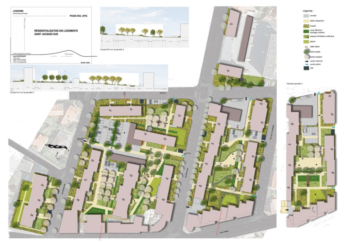 "The aim of this residential area project is to be in line with the needs of the tenants taking into account three axes: living together, appropriating spaces and improving outdoor spaces." (Ref. 2, page 33)