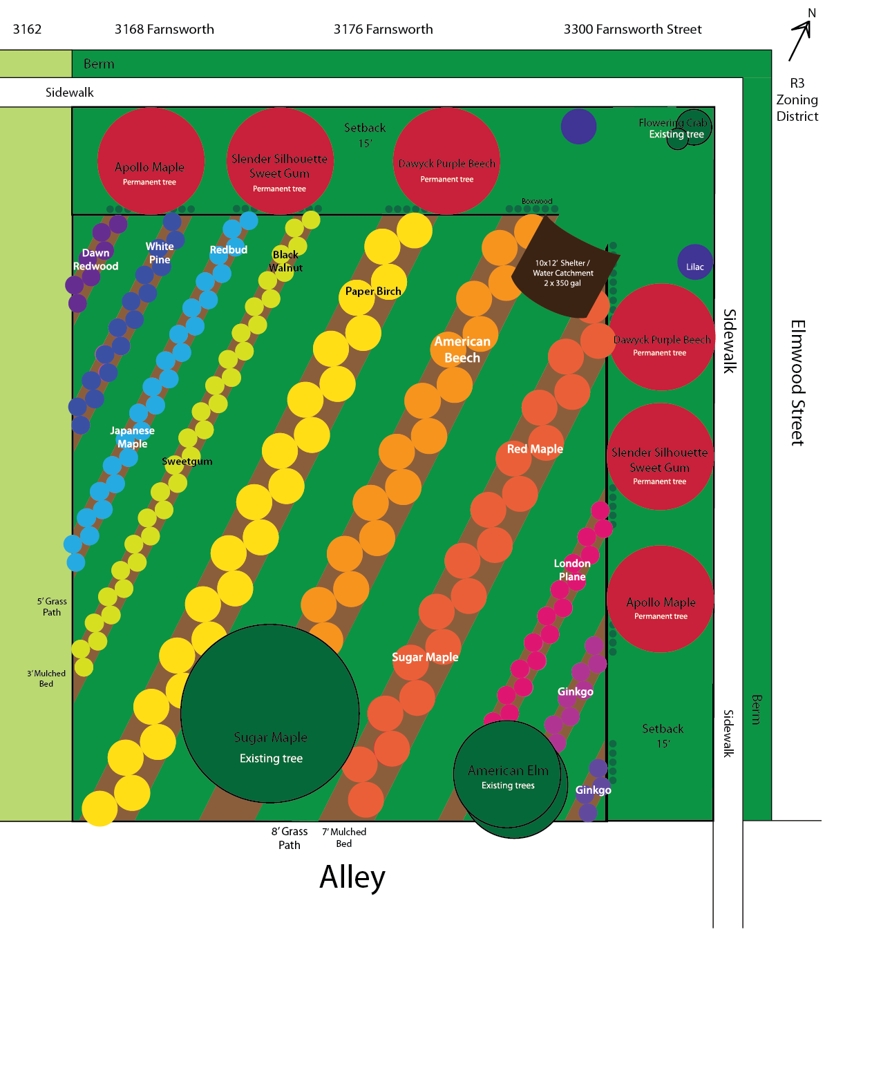 5. Increased number of species present: "We planted three each of Princeton Sentry Ginkgo, Redpoint Red Maple, Paper Birch, Cedar, and Yew. We also planted some understory trees that will add spring excitement. We planted two Kousa Dogwood and two Forest Pansy Redbuds. Oh, and last but not least, on the hill we planted a single Weeping Beech." (2)
