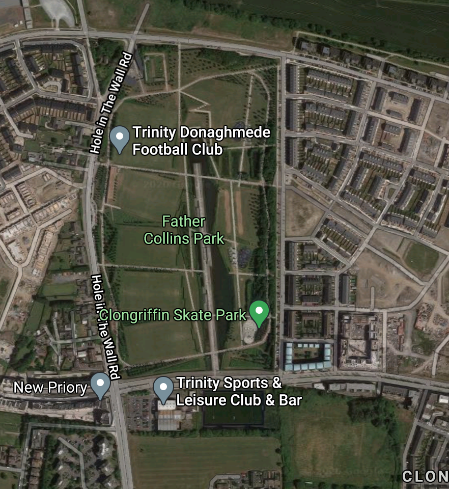 Fr. Collins Park is distinguished by its unique architectural design, which features innovative technological product and infrastructural solutions with focus on sustainability. These include the use of Ground Granulated Blast furnace Slag in concrete structures, for which it won the 2009 Sustainability Award of the Irish Concrete Society; wind turbines, a Sustainable Drainage System using wetlands, a green roof, and facilities for cyclists. As an acknowledgement of the innovative sustainable design of the park, it also won the 2009 OPUS Architecture and Construction Award, which is awarded to projects incorporating striking architecture with high standards of workmanship; the 2010 Best Public Space award given by the RIAI network, who described the park as "a step-change in the design of public parks in Ireland."; the 2010 Local Authority Members Association Awards for Best Environmentally Friendly Initiative and Best Public Park. (Ref. 1; Ref. 2; Ref. 4; Ref. 7; Ref. 8; Ref. 9)
