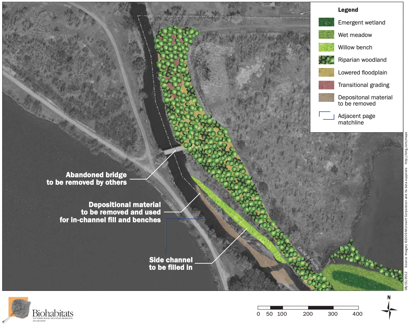 "The primary objective for the Sterling Pond and McMurry Restoration projects was to remove high, artificial banks [which were] created along the riverbank during gravel mining operations" (Ref. 1). Whilst the creation of these artificial banks sought to prevent river flooding during mining activities, they caused the Cache la Poudre River and its natural processes to become "highly modified and dysfunctional", with the elevated banks resulting in "disconnect[ion] of the river from its floodplain, increased bank erosion due to increased shear stresses resulting from channel confinement, and eliminated bankside vegetation and habitat" (Ref. 1).