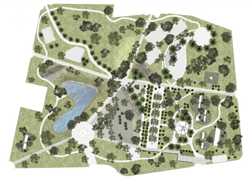 Four planned phases involving the creation of two ponds, one of great dimensions, which has already been excavated in the first phase, and which will also function as a reservoir regulator of the irrigation network, and another, of much smaller dimensions, which serves to configure a Space more classic, taking advantage of the existence of an already consolidated woodland. (ref 1)