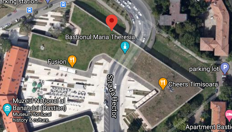 Architecturally speaking, there is a glass-lined subterranean assembly which is placed smack dab in the middle, with a shallow ramp funneling visitors downwards. Also, this is the first green roof on a historical building in Romania. (1)