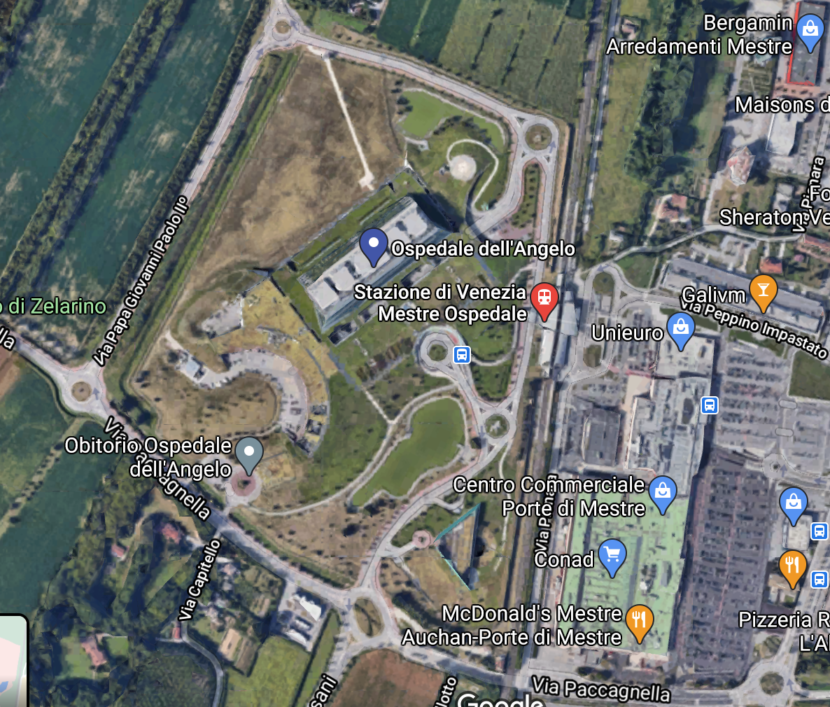 "Considered the most technologically advanced health facility in Italy" the Venice-Mestre Hospital has created a large infrastructural project including various roof gardens, extensive green areas that offer water protection, storage of water as well as proper drainage and required ventilation of the green, including greenroofs, gardens,green driveways, a lake, meadows and green terraces.(ref. 1 and 3)